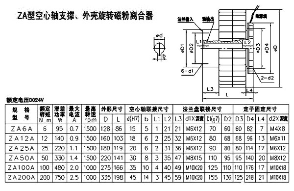 ZA型空心軸支撐外殼旋轉(zhuǎn)磁粉離合器